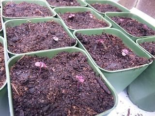 まず赤紫蘇。やはり5年前の青紫蘇の種は発芽しませんでした。