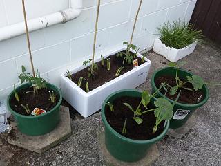 この週は、バジル、赤紫蘇、などを、鉢植えに移しました。