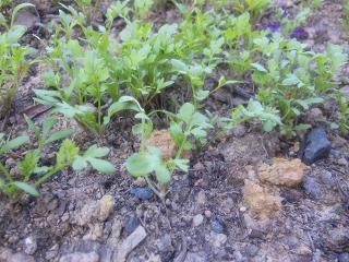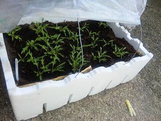 つづいてバジル。とても成長が遅れています。例年ならもう一度は回収していなければいけません。今ようやく本葉が見えてきたことです。今年は苦戦するに間違いありません。