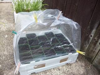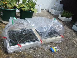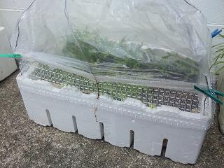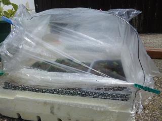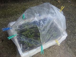 In this case, I tried to cover the plastic bag like some vinyl house, because it will be faster to glow and prevent some insects, especcially it is good to keep a condition of enviroment for herb for recovering the slow growth of this year.