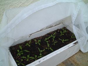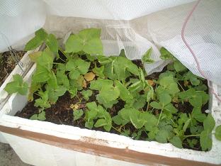 クレソン。これも職場で売れ残ったクレソンを水を張ったプランターに入れただけ・・・。収穫は下部を5センチほど残した上のみを収穫して放っておくとまた育ちます。最近水だけでは葉の育ちが悪いので、薄い砂糖水を試してみます。(できれば化学肥料を使いたくないので)