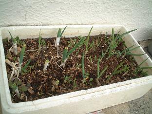 ニラとネギ。ニラは三つ葉と同様・・・。冬場は枯れてしまいます。でも時々水を上げつつ春になると出てきました。まだ一度しか回収していませんが半束くらいの量が回収できます。(そもそも、職場でニラが大量にもらえるので重要視はしていませんが・・・。)これも、3週間ほどでもとの長さになります。仕事をしていなければ後2プランターほど栽培すれば回っていくと思います。