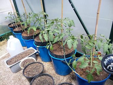 まずチェリートマト7株。去年は10株1000個以上とれたので今年は少し控えめ。鉢を少し改良して果実を大きくしたいなと思っています。